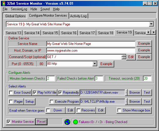 32bit Service Monitor可以用監視你的Web, Email, FTP等網路服務,在很短時間就