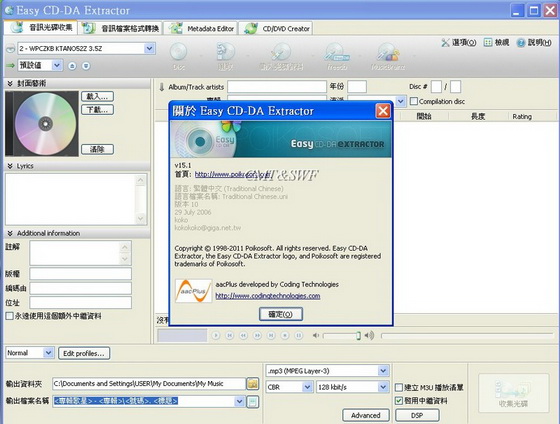 Easy CD-DA Extractor v15.1.0.1 直接將音頻CD轉換成MP3﹑WMA﹑VQF﹑OGG和WAV等格式 繁體多國語言破解版