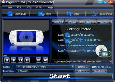 Bigasoft DVD to PSP Converr v1.7.14.4344 強大的DVD格式轉換到PSP視頻軟體 英文破解版